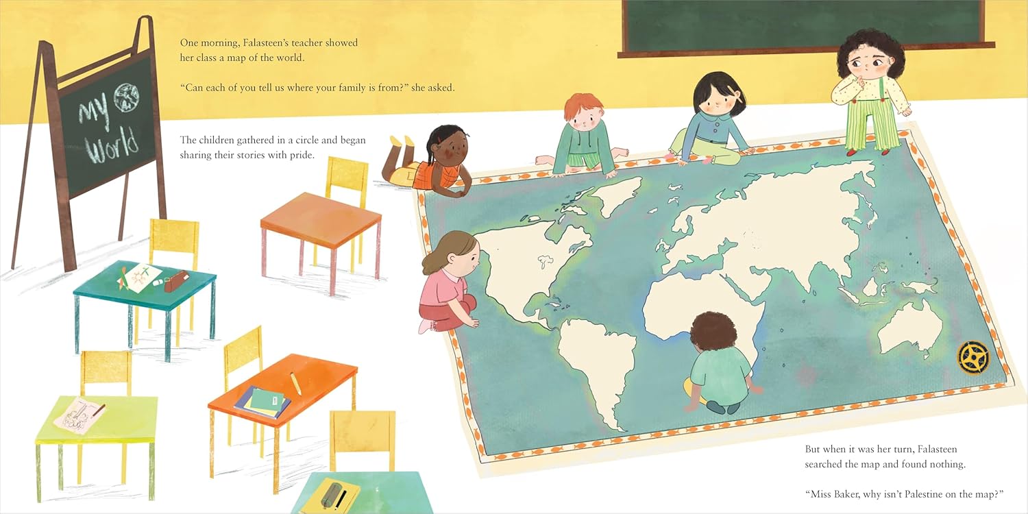 At school, Falasteen and her classmates are tasked with finding their families' home countries on a map, but no matter how hard she looks, Falasteen can't find Palestine.