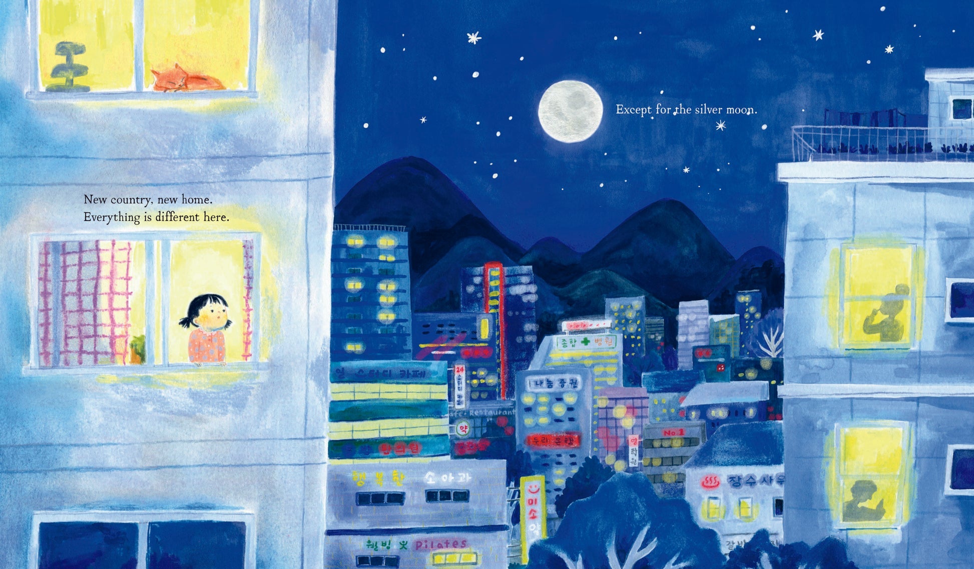 When Bomi moves to a new country everything seems different except for the silver moon. Making a faraway place feel like home isn't easy, but as she explores Bomi finds comfort in matching new with old. Soon she discovers the colours of home everywhere she looks.