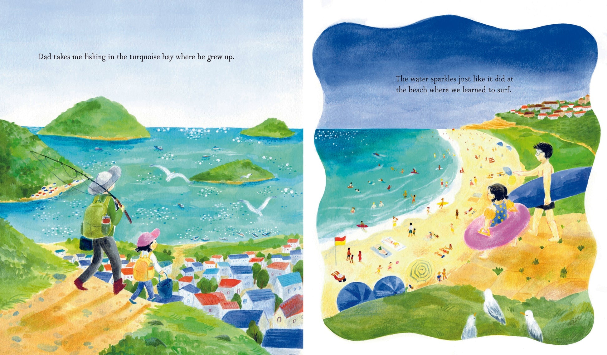 A sun-speckled story about one little girl connecting the two countries she calls home through the matching of colours.