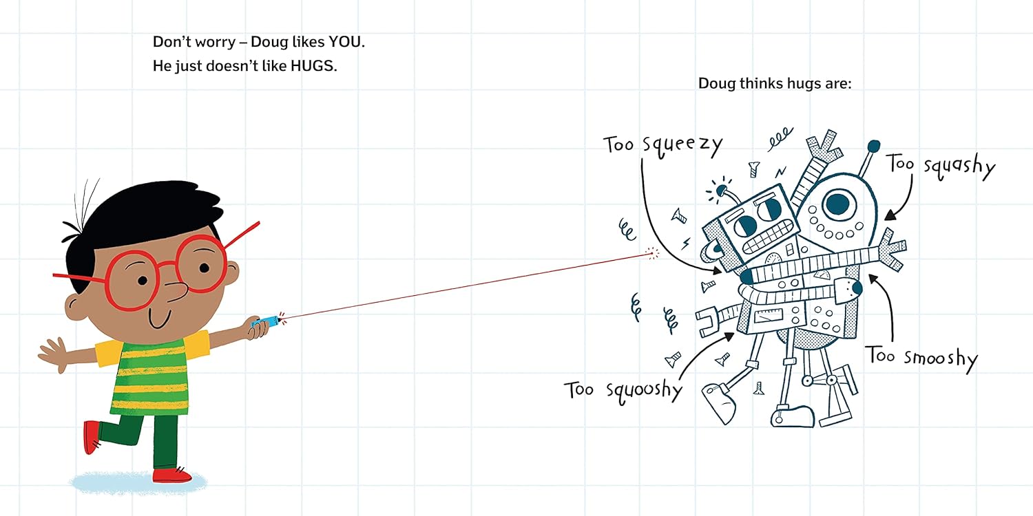 Meet Doug. Doug doesn't like hugs. He thinks they're too squeezy, too squashy, too squooshy, too smooshy. However, Doug is a master of high fives (and low fives and side fives).