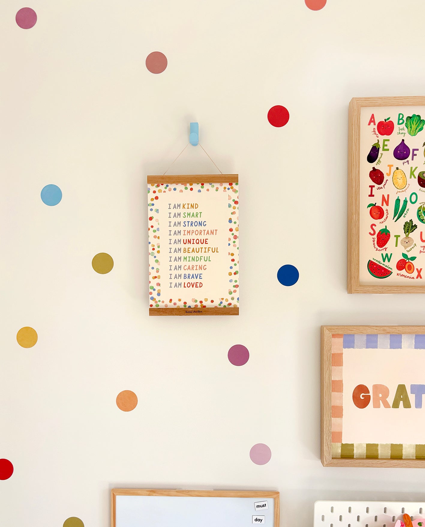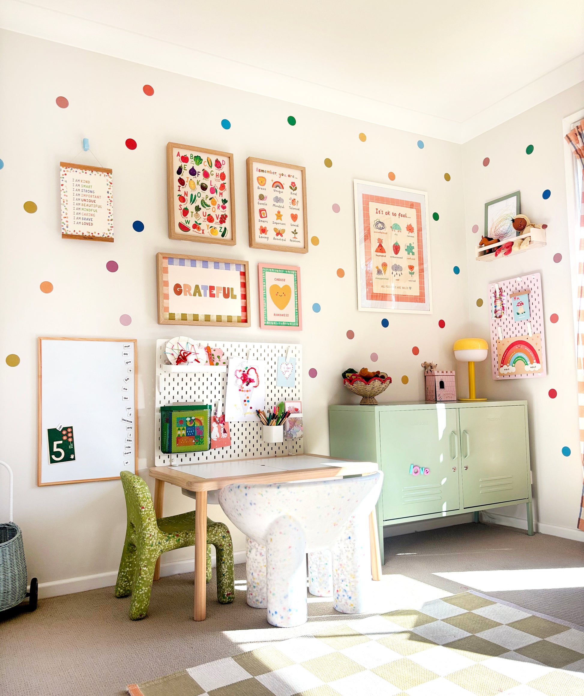 Our Dot wall stickers are designed to transform any space in minutes. Scatter them for a fun confetti effect or place them evenly for a neat wallpaper-style look. They’re repositionable, removable and reusable, without leaving any sticky marks behind.