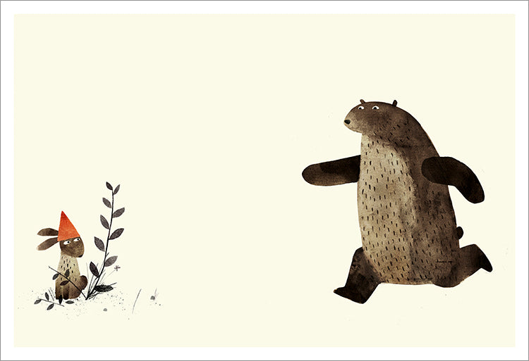 Patiently and politely, he asks the animals he comes across, one by one, whether they have seen it. Each animal says no (some more elaborately than others). But just as it he begins to lose hope, lying flat on his back in despair, a deer comes by and asks a rather obvious question that suddenly sparks the bear's memory and renews his search with a vengeance... Told completely in dialogue, this quirky, hilarious, read-aloud tale plays out in sly illustrations brimming with visual humour and winks at the reader who will be thrilled to be in on the joke.