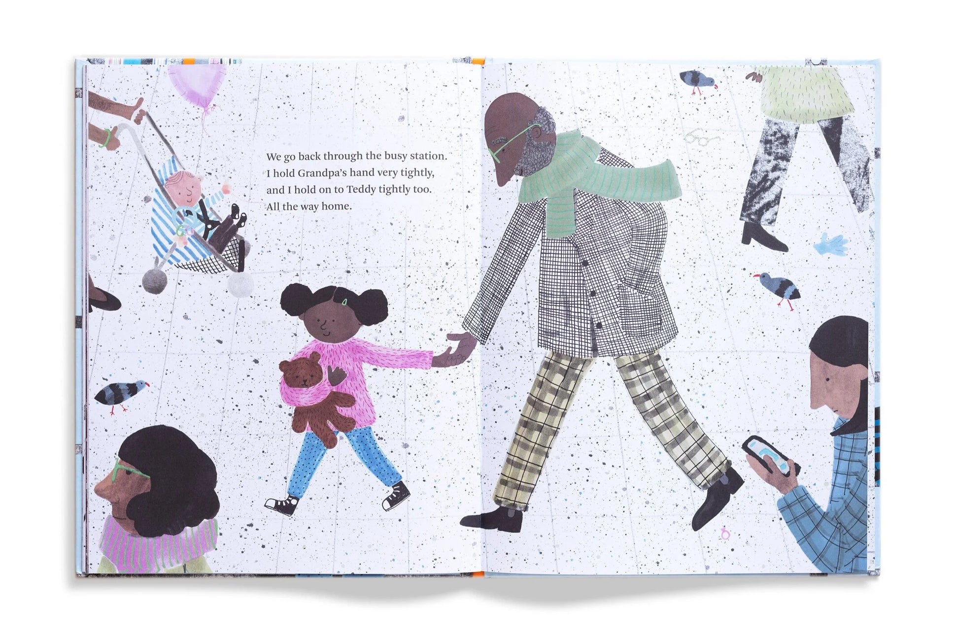 A little girl and her Mum are visiting Grandpa on the train. It's very busy - hold on tight to teddy! But when they arrive at their destination something is wrong . . . teddy has gone missing.