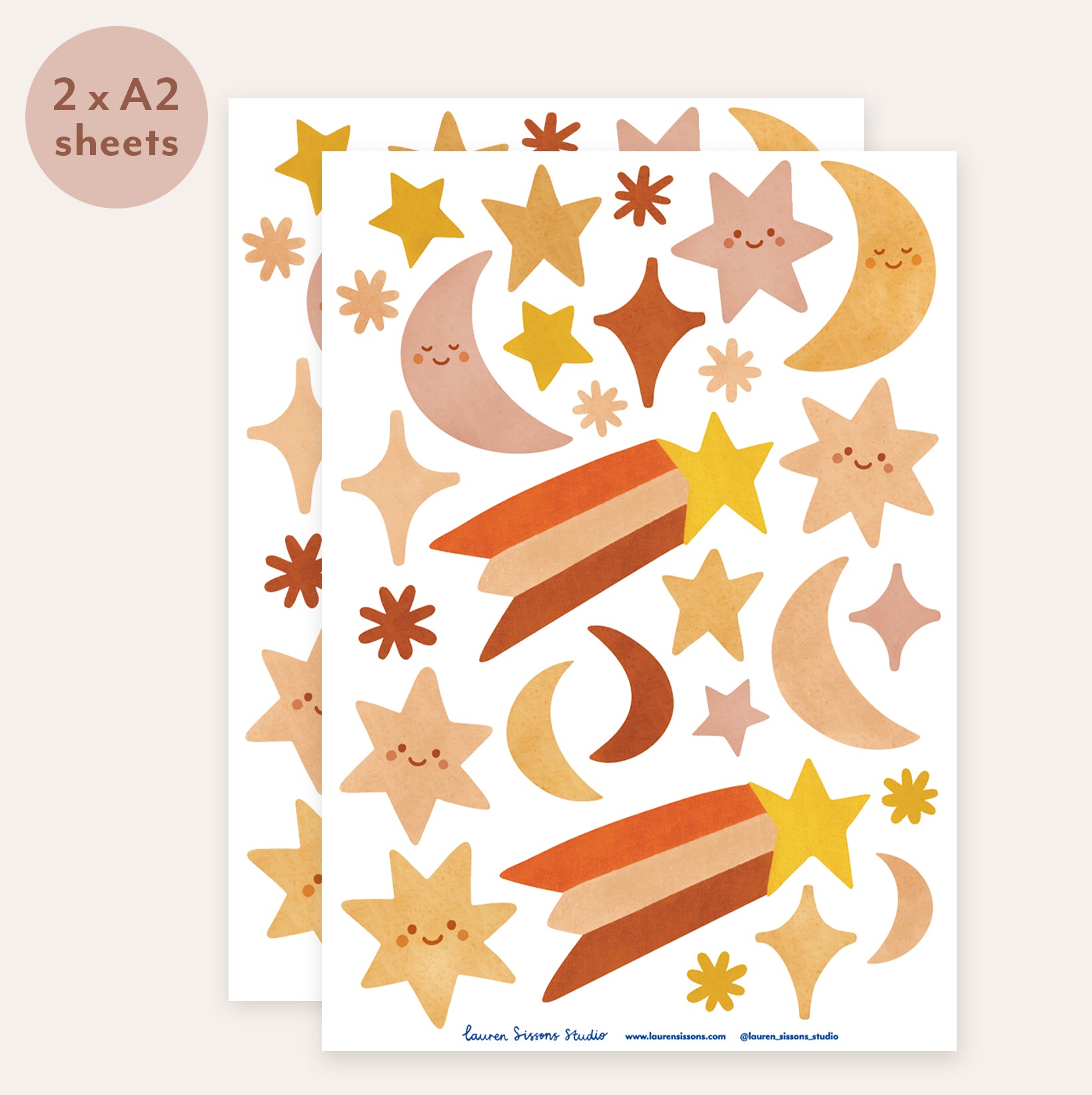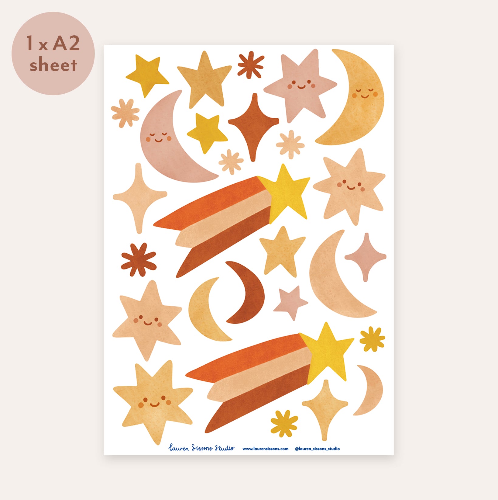 Our Moon & Stars wall stickers are designed to transform any space in minutes. They’re repositionable, removable and reusable, without leaving any sticky marks behind.