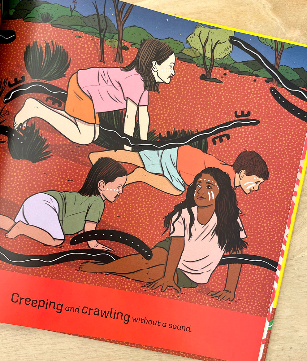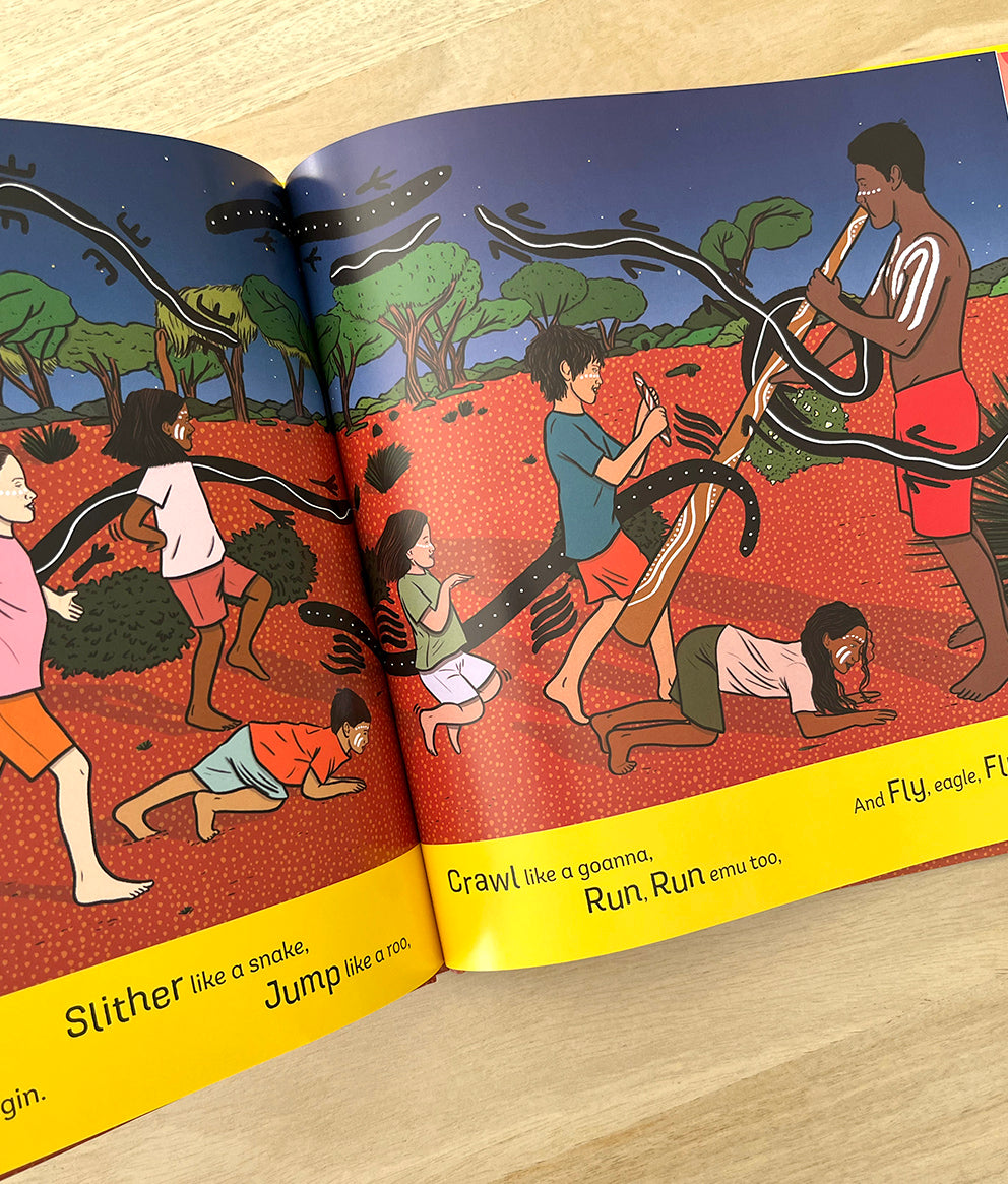 A joyful celebration of First Nations culture and Australia's unique animals through dance and music, with rhyming actions to get young readers moving and vibrant illustrations from Noongar illustrator Janelle Burger.
