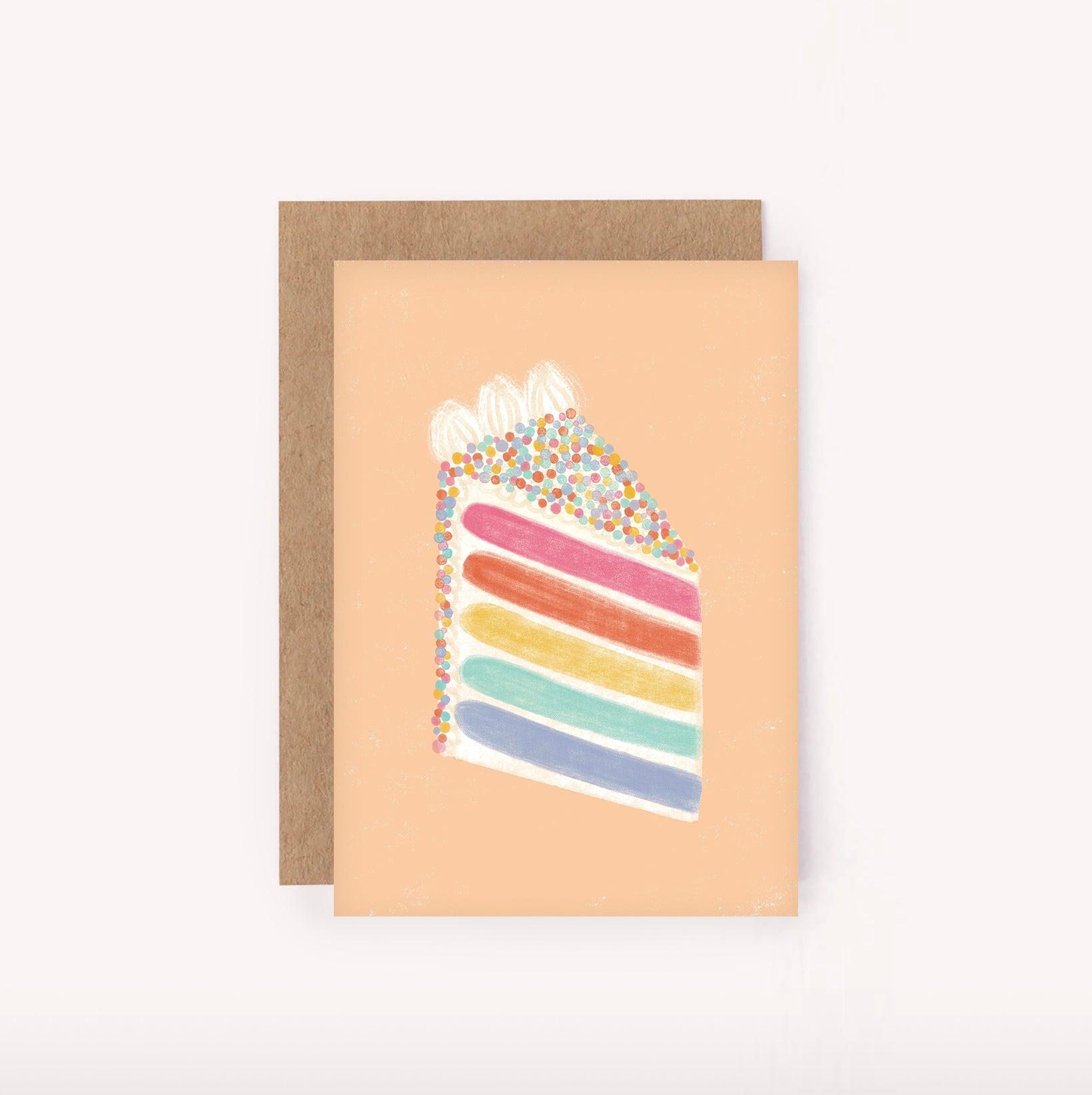 Featuring an illustrated rainbow cake covered in sprinkles, this mini card is perfect for celebrating a birthday or sending just because (who needs an excuse for cake!) Blank inside for a personal message.