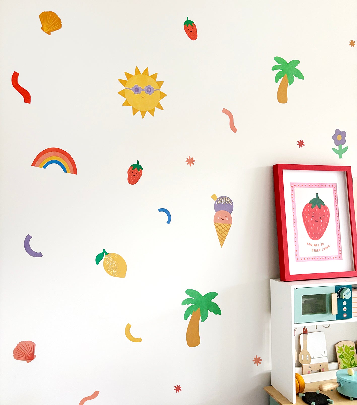 Our Tropical wall stickers are designed to transform any space in minutes - from palm trees and a smiling sun to cute fruit. They’re repositionable, removable and reusable, without leaving any sticky marks behind.