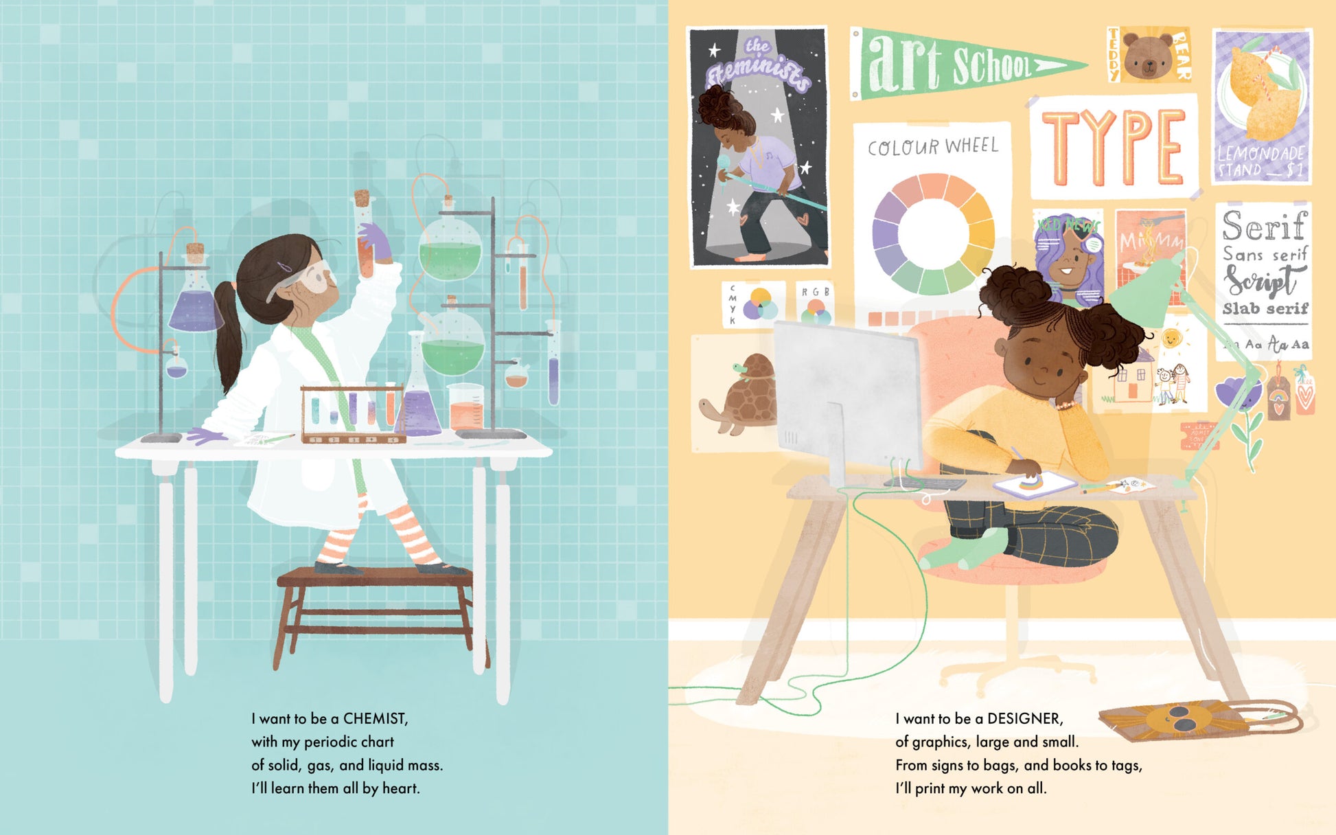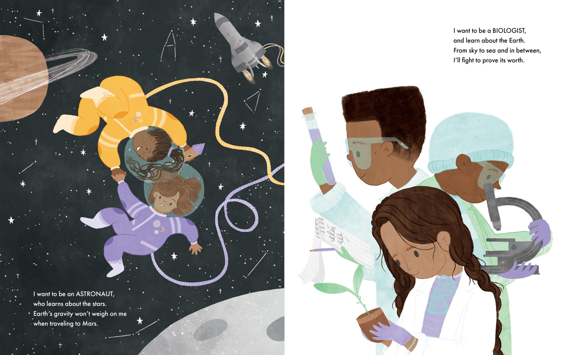 A picture book encouraging children to pursue their dream STEAM careers, full of diverse representation